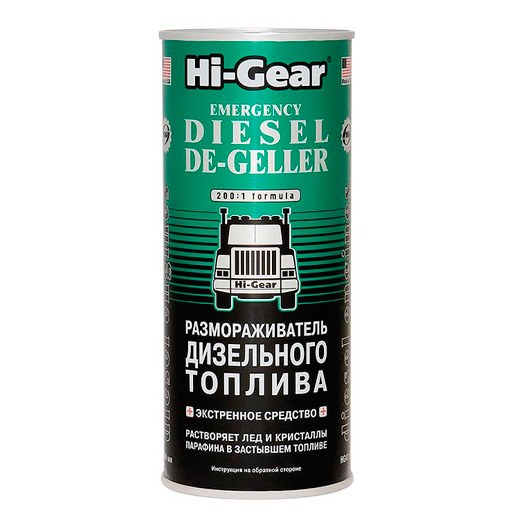 Размораживатель Hi-Gear совместим со всеми видами дизельного топлива и предназначен для усиления низкотемпературных характеристик дизтоплива и растворения образовавшихся кристаллов парафинов и льда в топливной системе.
